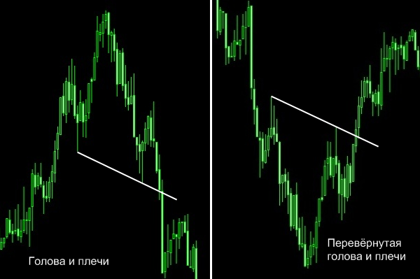 Разворотная фигура «Голова и плечи» (англ. head and shoulders) — одна из самых распространенных фигур технического анализа, напоминающая линию плеч, шеи и головы человека. Образуется после восходящего тренда и разворачивают цену, создавая новый нисходящий тренд. Голова и плечи представляет собой три последовательных пика, средний из которых (голова) самый высокий, а другие два пика по бокам (плечи) — пониже и примерно равны. Донья между пиками формируют линию поддержки (или суппорт), также именуемый «вырезом» (англ. neckline) в этой конкретной фигуре.